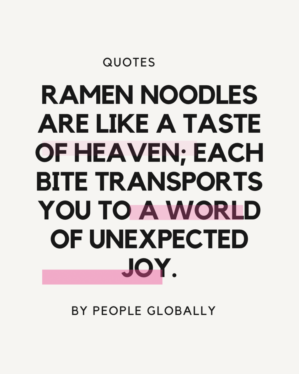 “Ramen Noodles are like a taste of heaven; each bite transports you to a world of unexpected joy. If you find yourself in a gloomy mood, whip up a bowl of noodles, slurp your way through, and let the simple pleasure bring a smile to your face. Sometimes, it’s the little things that can brighten your day.”