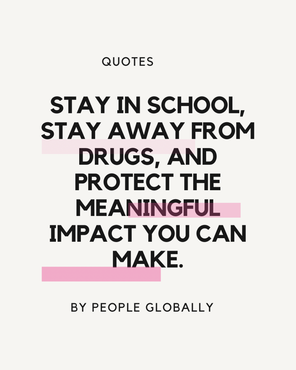 “Embrace the journey of education, steer clear of the pitfalls of drugs, and understand that negative influences can tarnish the valuable habits you bring to the world. Be mindful of your choices, for they shape not only your path but also the positive contributions you can offer to others. Stay in school, stay away from drugs, and protect the meaningful impact you can make.”