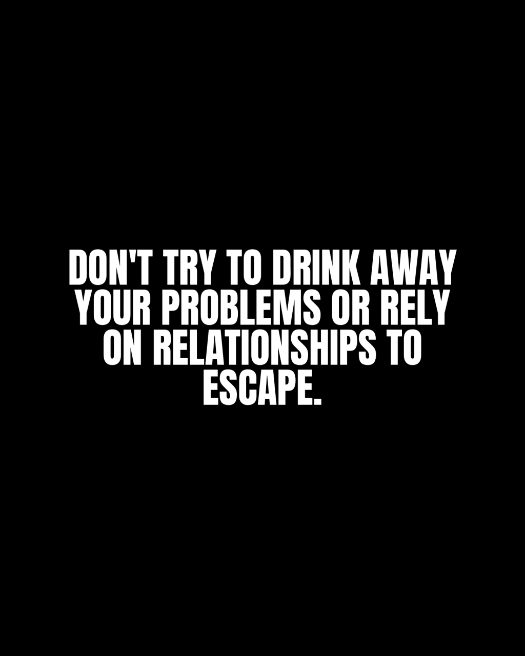 “Don’t try to drink away your problems or rely on relationships to escape. It might give you a short break, but it won’t really help you heal or change. The key is learning to love yourself and embracing the journey of building and growing in life. Face your challenges, enjoy the good moments, and focus on becoming the person you want to be. True change starts from within, with self-love and the determination to grow.”