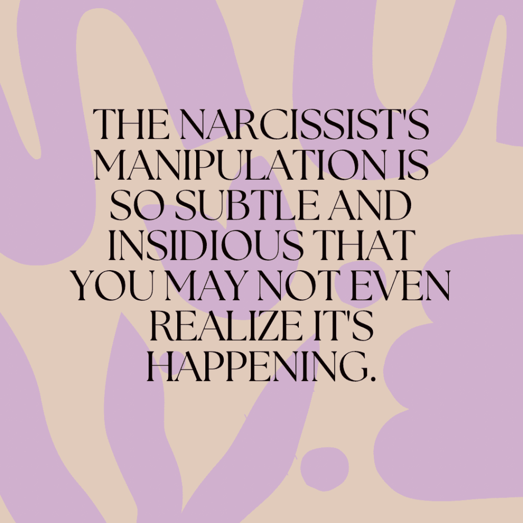 “The narcissist’s manipulation is so subtle and insidious that you may not even realize it’s happening. They’ll use guilt, fear, and manipulation to keep you under their control, all while pretending to have your best interests at heart.”