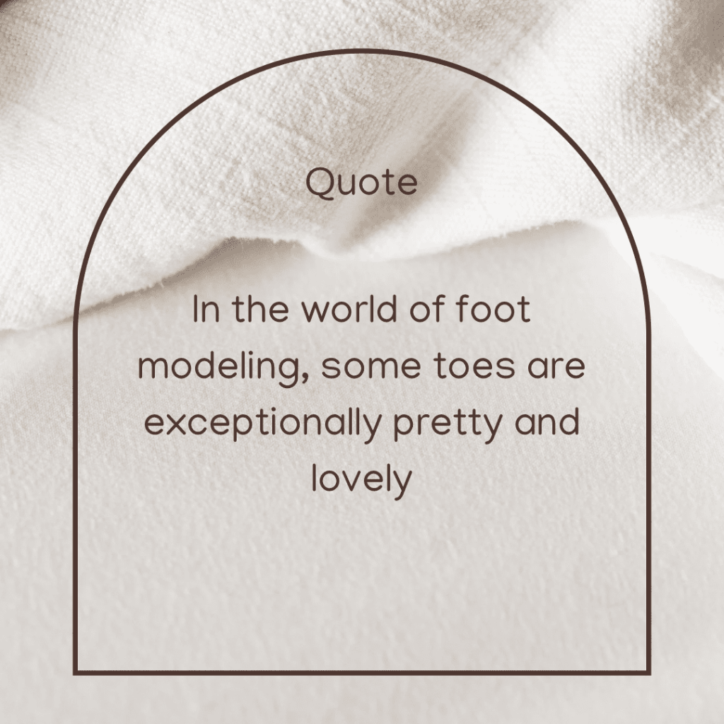 “In the world of foot modeling, some toes are exceptionally pretty and lovely, and they make you want to kiss them because they look so nice and soft.”