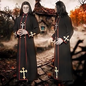 Embrace a unique and eerie look with this Men’s Vampire Pastor Masquerade Costume. Perfect for Halloween or themed events, this striking outfit combines the classic elegance of a pastor’s attire with a dark, vampiric twist. The costume features a detailed faux vest, a high-collar cape, and a dramatic clerical collar, all in rich, gothic colors. Whether you’re attending a masquerade ball or hosting a spooky gathering, this ensemble is designed to turn heads and make a memorable impression.