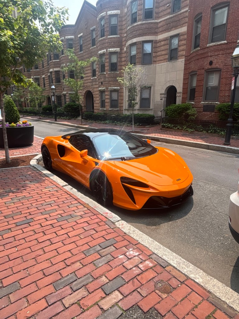 Parked in the historic Back Bay, Boston, the orange Artura turns every head. It’s got the silhouette of the 570S but with a more modern, aggressive edge. The front-end detailing, sharp side vents, and aerodynamic body sculpting are all perfectly balanced. It’s bold without being loud — exactly how a supercar should be.