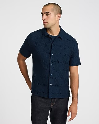 Express Men’s Textured Floral Short Sleeve Sweater Polo