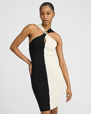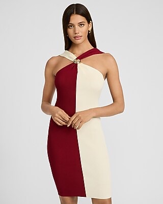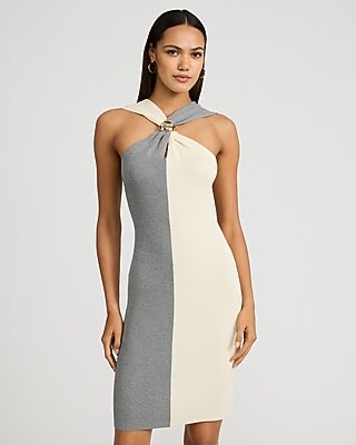 Express Women’s Color Block Hardware Halter Neck Mini Sweater Dress