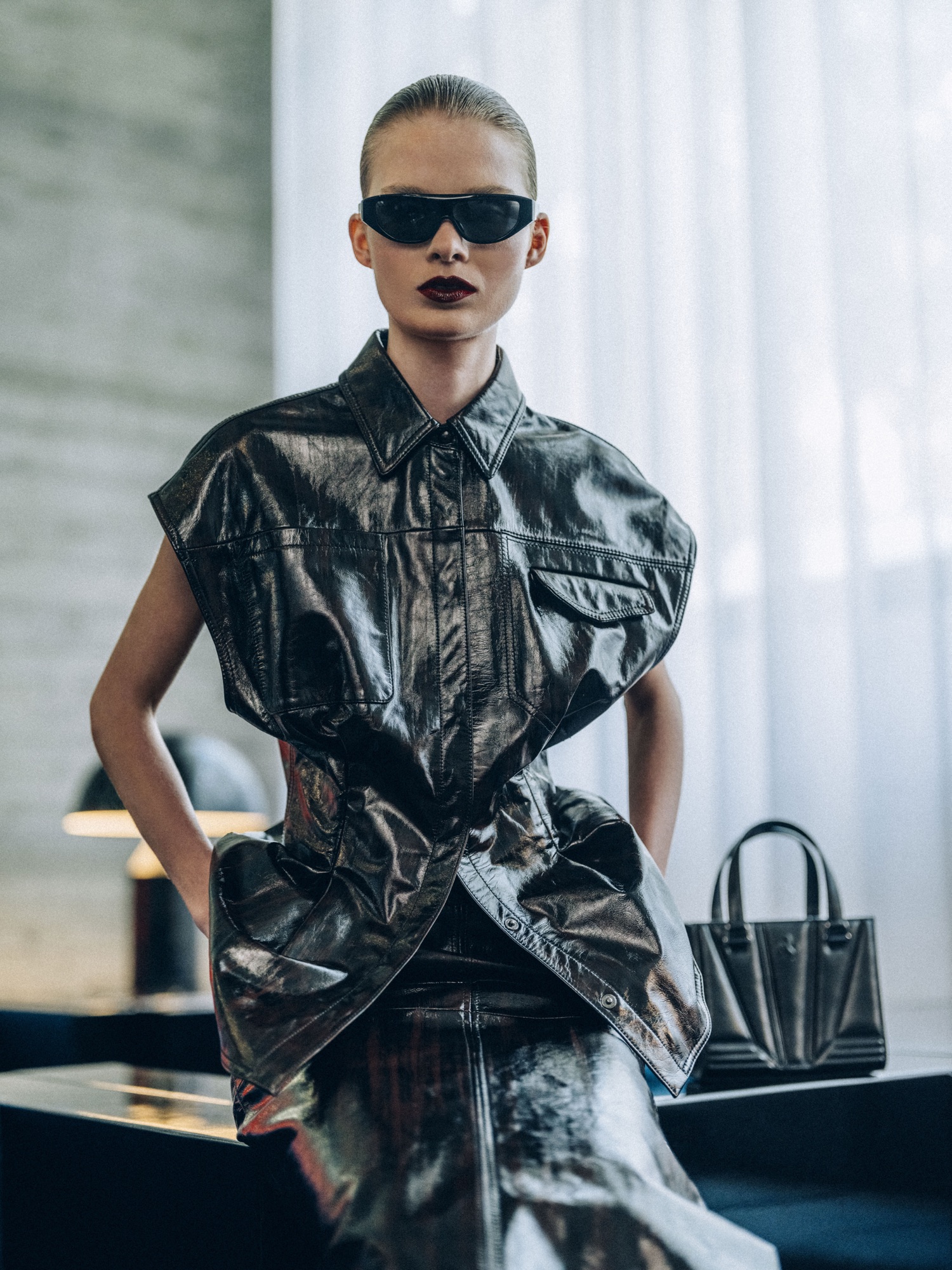 Made from fine nappa leather, this fitted midi dress features an internal underwire bodice and is fully lined in signature Ferrari red. It translates tactical leather into pure, functional form. [Buy Now]
